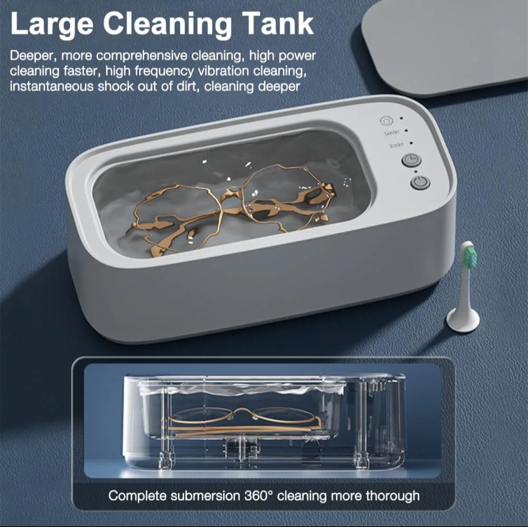 جمع و جور و قابل حمل: فقط ۳۲۰ گرم. ۲۲x۱۱x۸ سانتیمتر. میتوانید آن را با خود در خانه، محل کار، مدرسه یا حتی هنگام سفر ببرید. جمع و جور و مرتب است، فضای کمی را اشغال میکند و حمل آن آسان است. پاککنندههای اولتراسونیک ما از امواج صوتی برای تمیز کردن استفاده میکنند، به طوری که وسایل مهم کمتر ساییده میشوند.