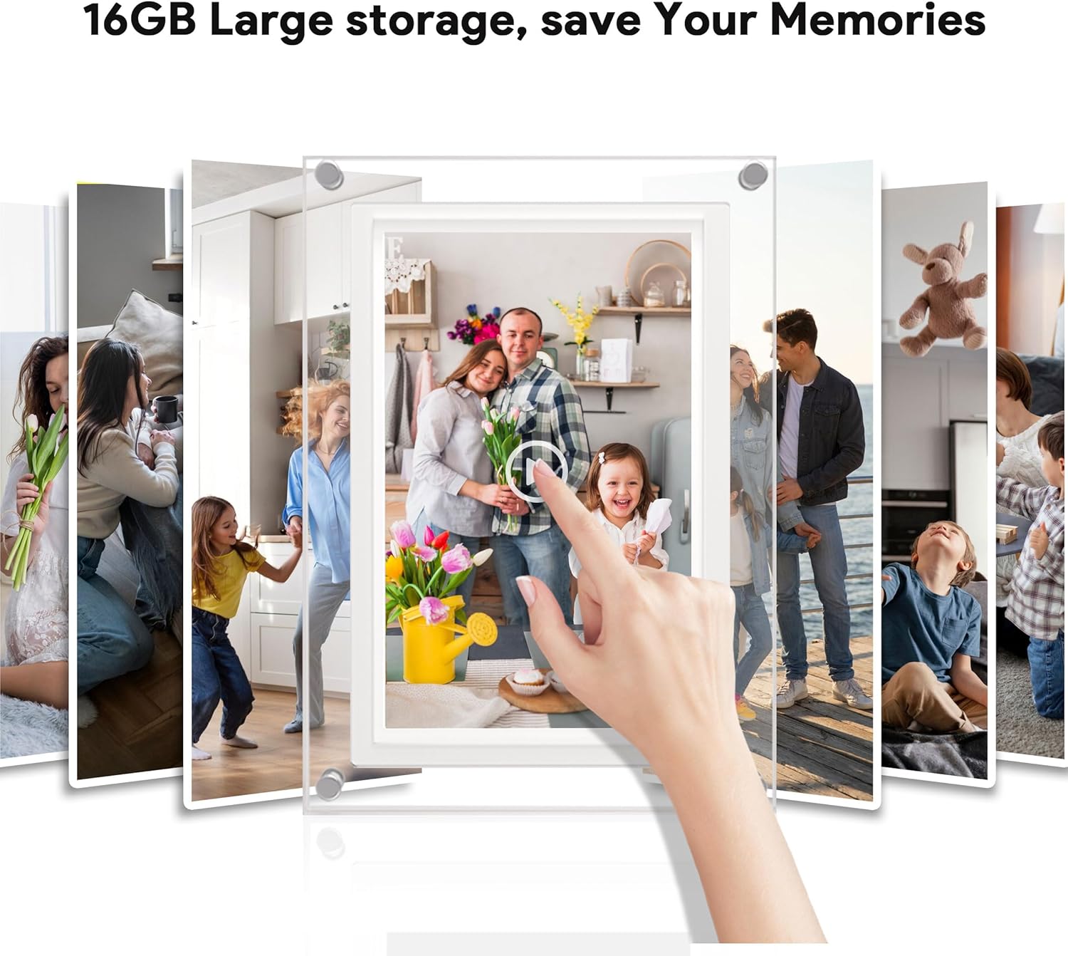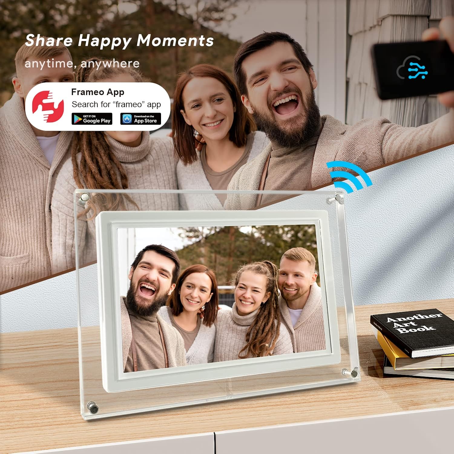 عکسها یا ویدیوهای کوتاه (تا ۱۵ ثانیه) را فوراً از طریق برنامه Frameo به سراسر جهان ارسال کنید. عزیزان میتوانند لحظات خوب شما را به صورت زنده روی قاب دیجیتال اکریلیک وایفای مشاهده کنند. برنامه Frameo (iOS/Android) کنترل کامل مدیریت قاب را ارائه میدهد. بیش از ۱۰ عکس با اشتراک اختیاری Frameo+ برای ویژگیهای پریمیوم. این قاب پیشرفته به ۱۶ گیگابایت حافظه داخلی برای قابلیتهای ورود/خروج یکپارچه رسانهها مجهز شده است.