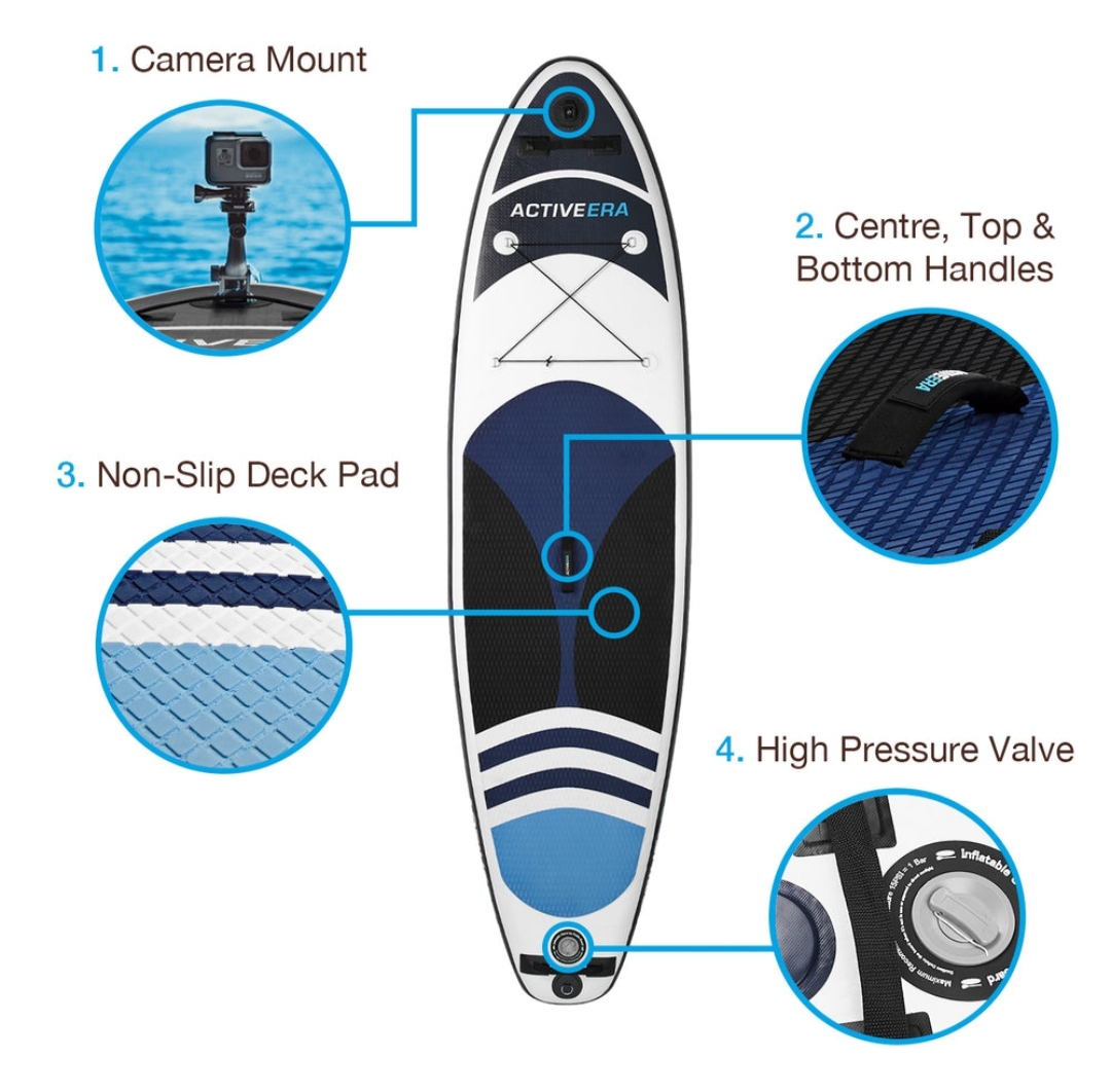 با این تخته پارویی ایستاده بادی، از روزهای گرم تابستان نهایت استفاده را ببرید. این تخته پارویی به راحتی با پمپ همراه آن باد و خالی میشود و لوازم جانبی اضافی نیز دارد تا به شما امکان دهد از ماجراجوییهای کنار آب نهایت لذت را ببرید