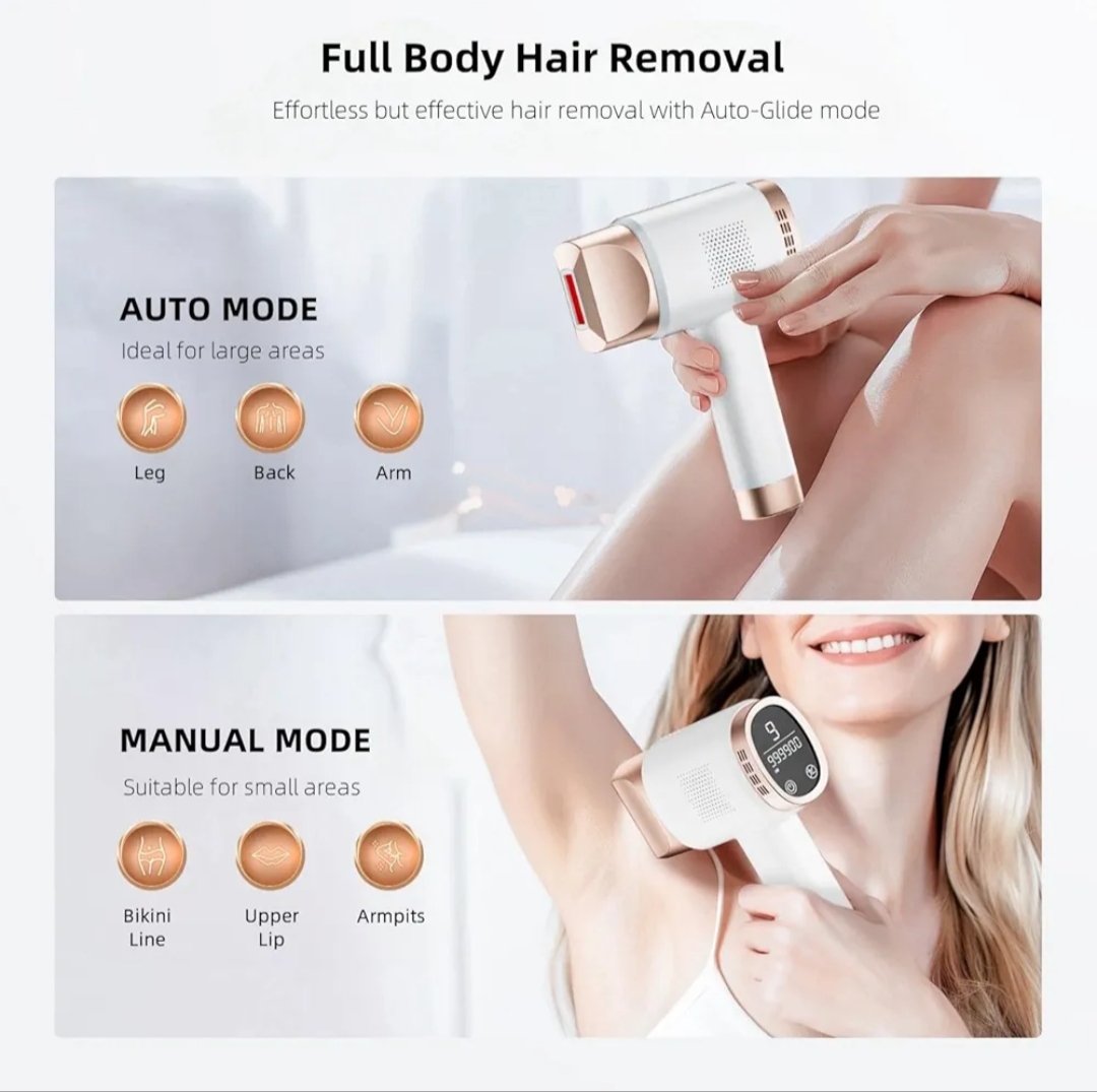 فناوری پیشرفته IPL برای حذف سریع و موثر موهای زائد: دستگاه حذف موهای زائد IPL مخصوص خانمها، ریشه هر فولیکول مو را هدف قرار میدهد و به طور موثری آن را میشکند تا از رشد مجدد آن جلوگیری شود. استفاده منظم ۲ تا ۳ بار در هفته به مدت ۴ هفته میتواند رشد مو را تا ۸۰٪ کاهش دهد.