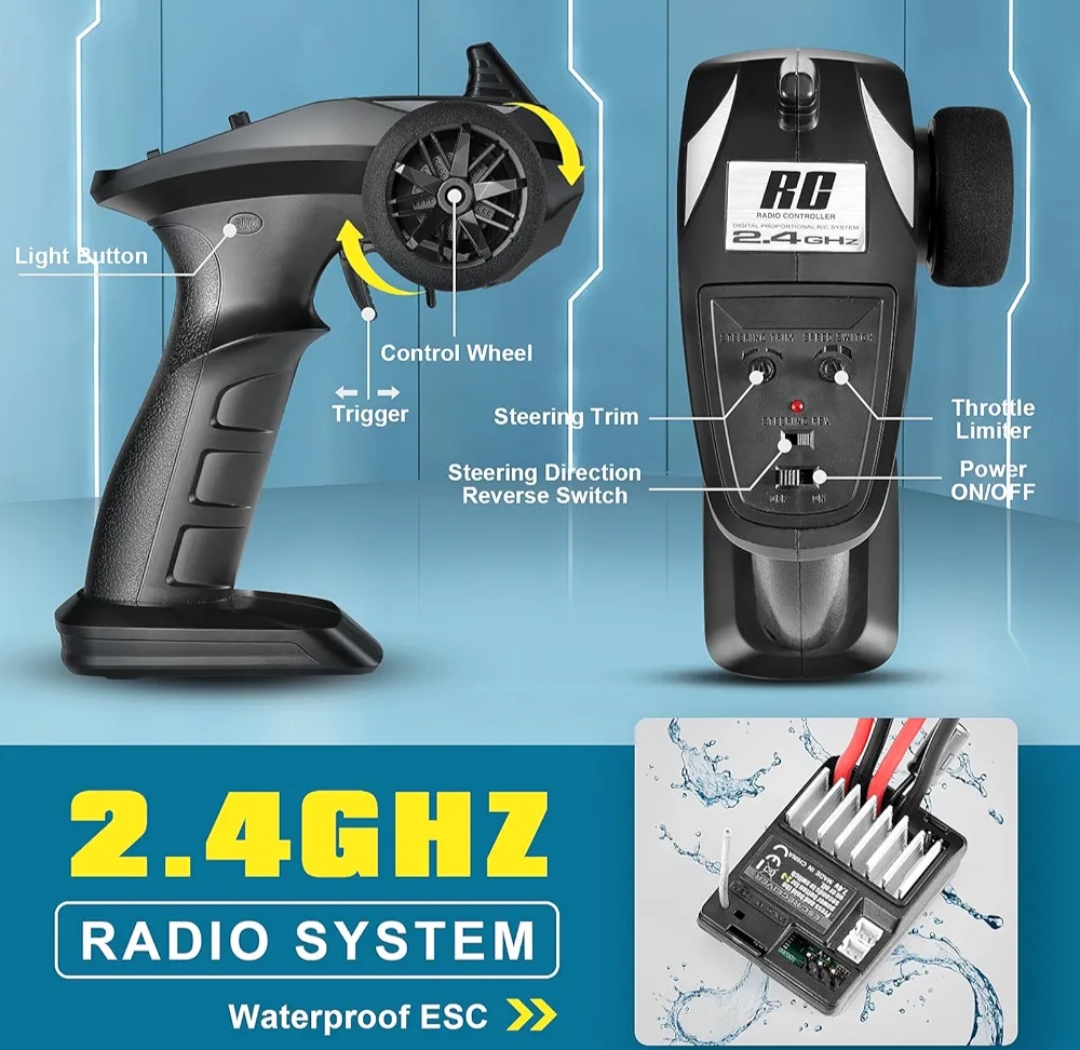 ماشین کنترلی همه کاره ضد آب: این ماشین کنترلی در برابر پاشش آب و امواج مقاوم است. این کامیون آفرود با گیرنده کنترل سرعت الکترونیکی 25 آمپر، دارای عملکردهای حفاظتی هوشمند متنوعی از جمله عملکردهای محافظت در برابر خاموش شدن باتری در اثر افت ولتاژ و محافظت در برابر جریان بیش از حد است. ساخته شده از مواد ABS با کیفیت بالا با استحکام و قابلیت تصادف بیشتر. لاستیکهای لاستیکی با اصطکاک بالا، ماشین کنترلی مسابقهای را پشتیبانی میکنند.