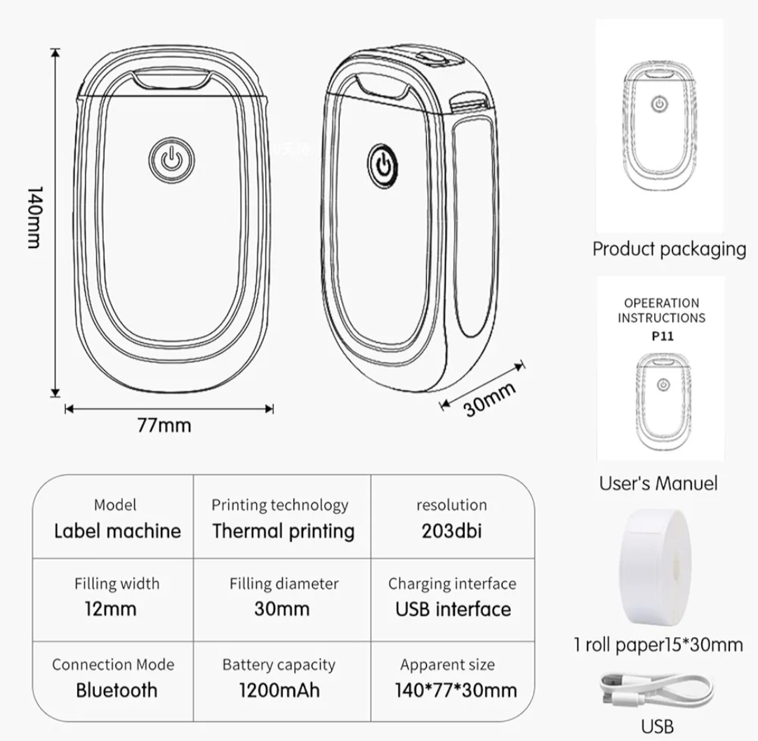 ★ لیست بستهبندی: شامل چاپگر برچسب بیسیم L11، کابل USB، جلد برچسب (15x30 میلیمتر) برای چاپ و دفترچه راهنما به زبانهای انگلیسی و چینی.