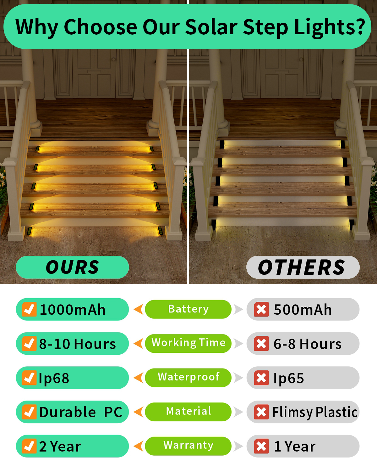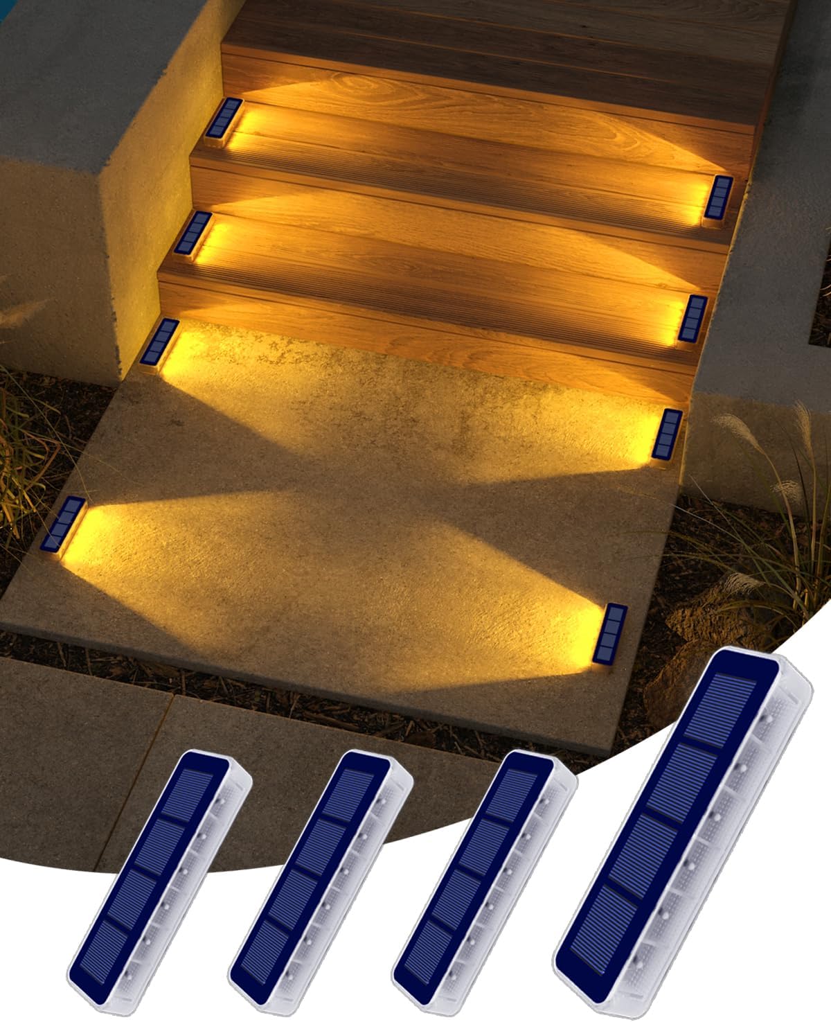چراغهای خورشیدی ضد آب فضای باز، چراغهای پله خورشیدی سفید گرم فضای باز، چراغهای عرشه خورشیدی، چراغهای پله خورشیدی LED، چراغهای خورشیدی برای مسیر ماشینرو، اسکله، حیاط، پاسیو، نرده، باغ، حیاط خلوت.