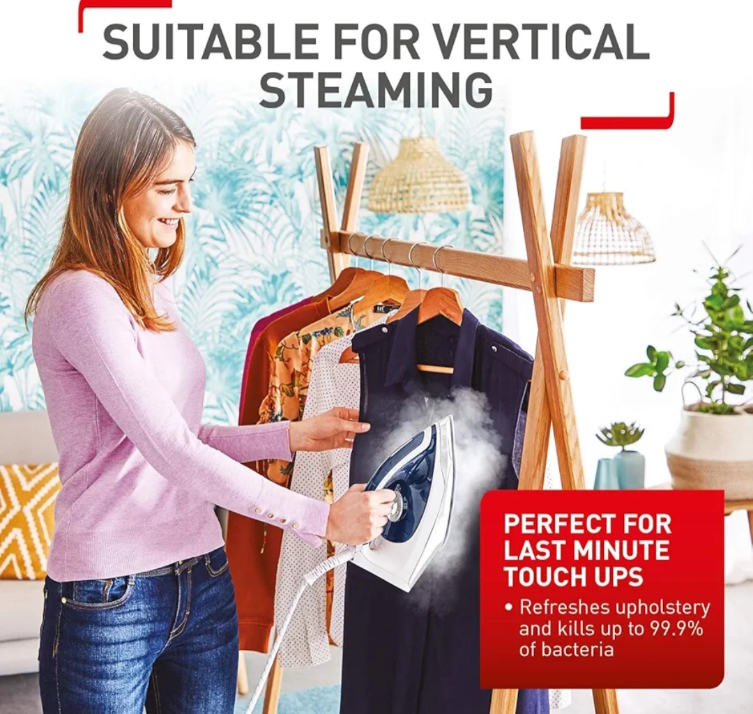 تازه کردن و ضدعفونی کردن: این اتو بخار دارای حالت بخار عمودی کاربردی است که برای روتوشهای لحظه آخری یا ضدعفونی کردن پارچهها عالی است و تا ۹۹.۹ درصد باکتریها و میکروبها را از بین میبرد. کاهش مصرف انرژی: با تغییر حالت به حالت اقتصادی (اکو) میتوانید از همان نتایج سریع بخاردهی لذت ببرید، در حالی که انرژی کمتری مصرف میکنید.