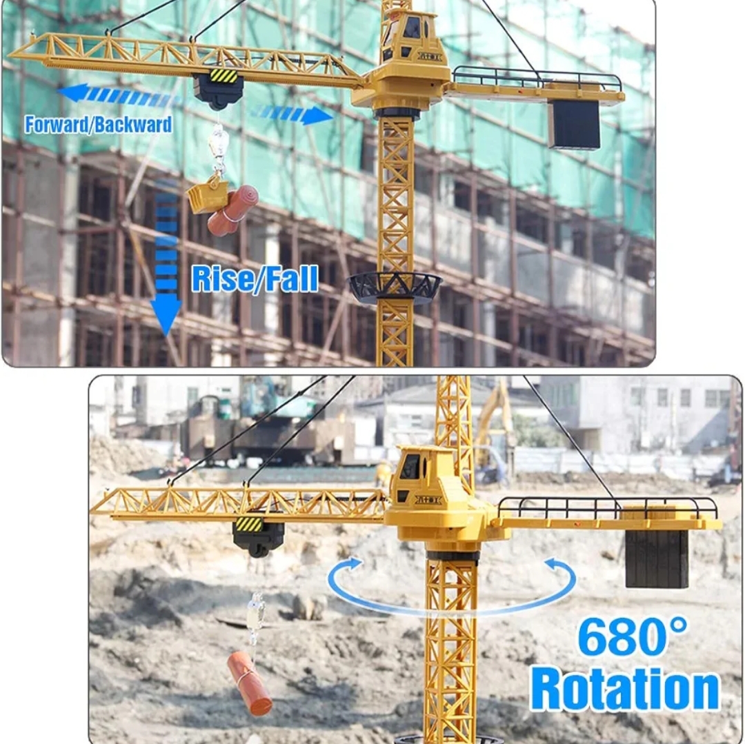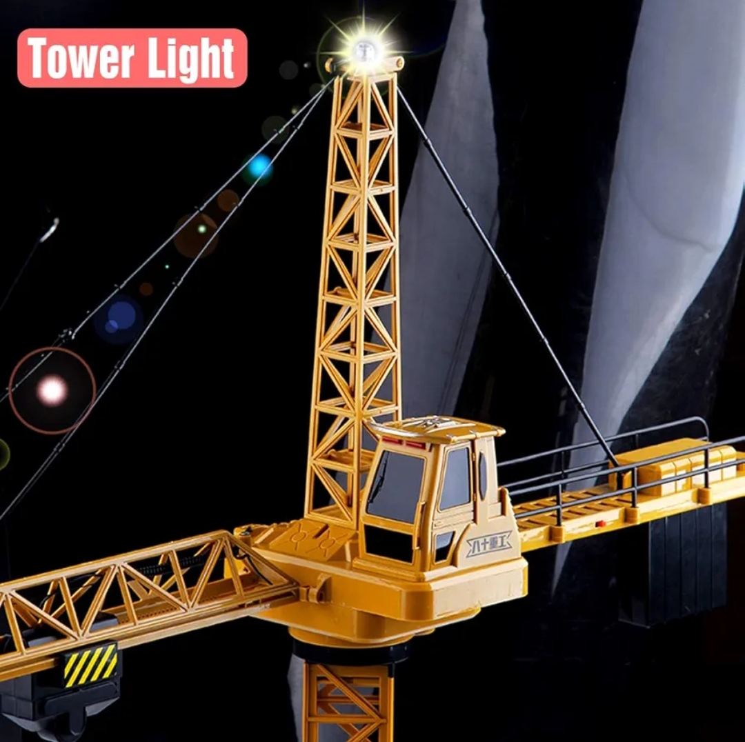 اسباببازی جرثقیل کنترلی بلند 128 سانتیمتری (50.4 اینچی) درست مانند یک جرثقیل واقعی که در محل ساخت و ساز میبینید، عمل میکند. قلاب با کنترل از راه دور بالا و پایین میرود، مسیر کشویی میتواند به جلو و عقب حرکت کند، بازوی برج میتواند وزن 500 گرم را تحمل کند و کنسول میتواند 680 درجه بچرخد، با نورها و صداهای واقعی.