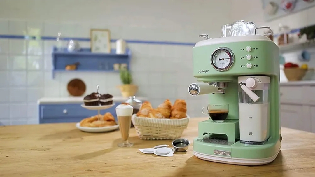 ویژگیها و عملکردها: قهوهساز اسپرسو Ariete Vintage با قابلیت خاموش شدن خودکار و فشارسنج برای نظارت بر فشار، سه عملکرد از پیش تعیینشده برای اسپرسو، لاته ماکیاتو و کاپوچینو ارائه میدهد. همچنین برای راحتی بیشتر، دارای کفساز شیر خودکار است.