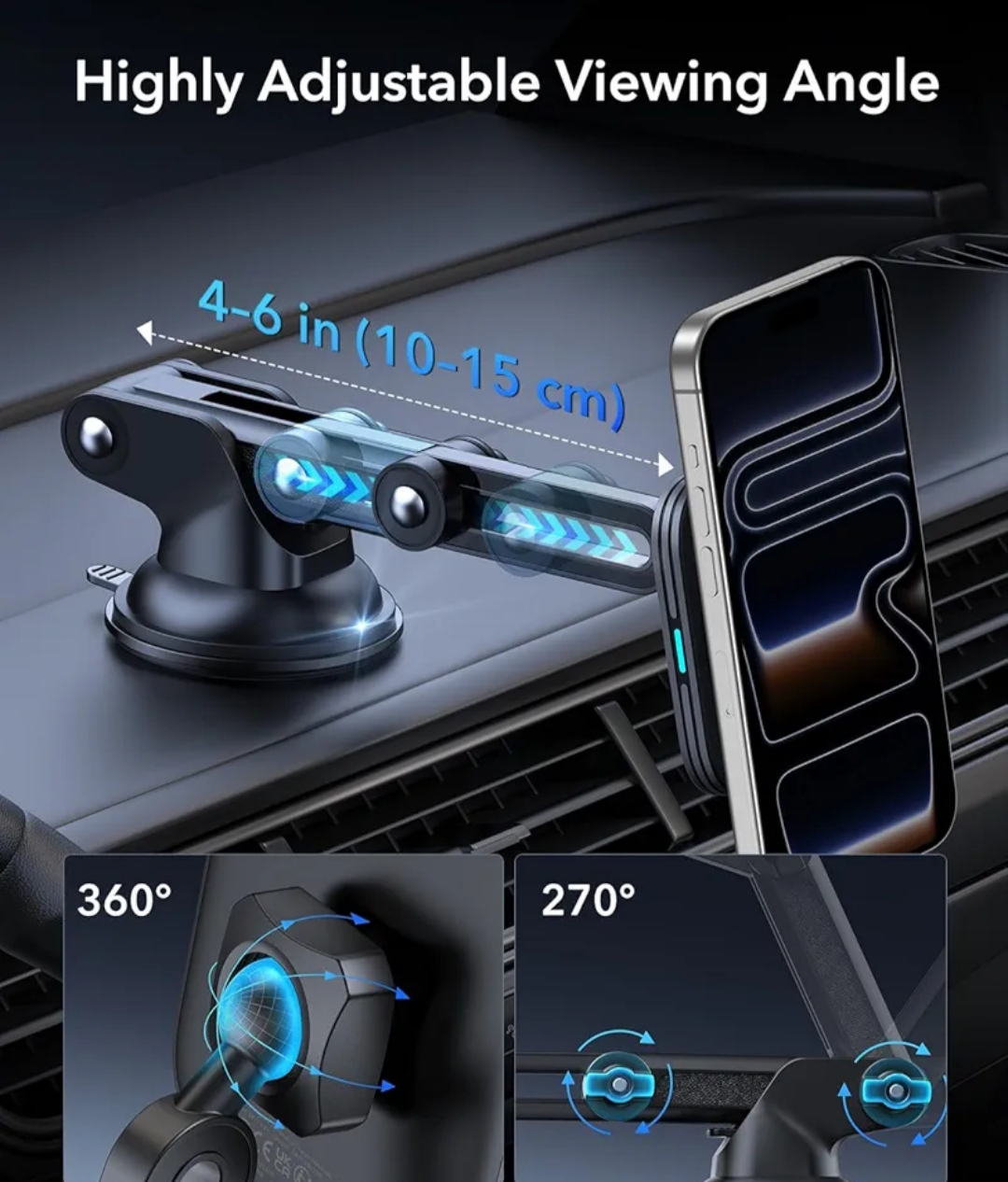 امکان چرخش ۳۶۰ درجه و تنظیم زاویه برای دید راحتتر — هم حالت افقی (برای مسیریابی) و هم عمودی.